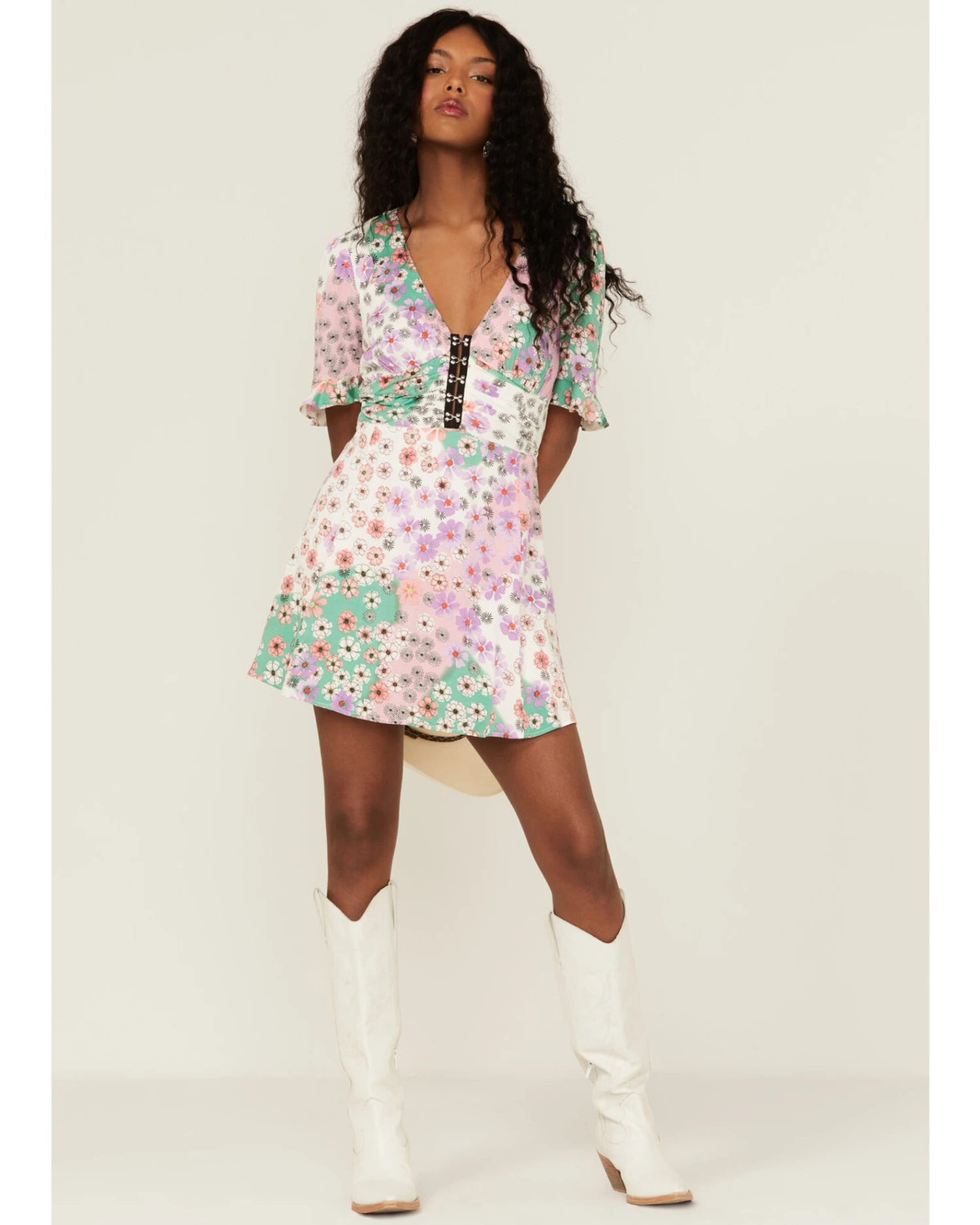Beyond The Radar Women’s Mixed Floral Print Corset Mini Dress