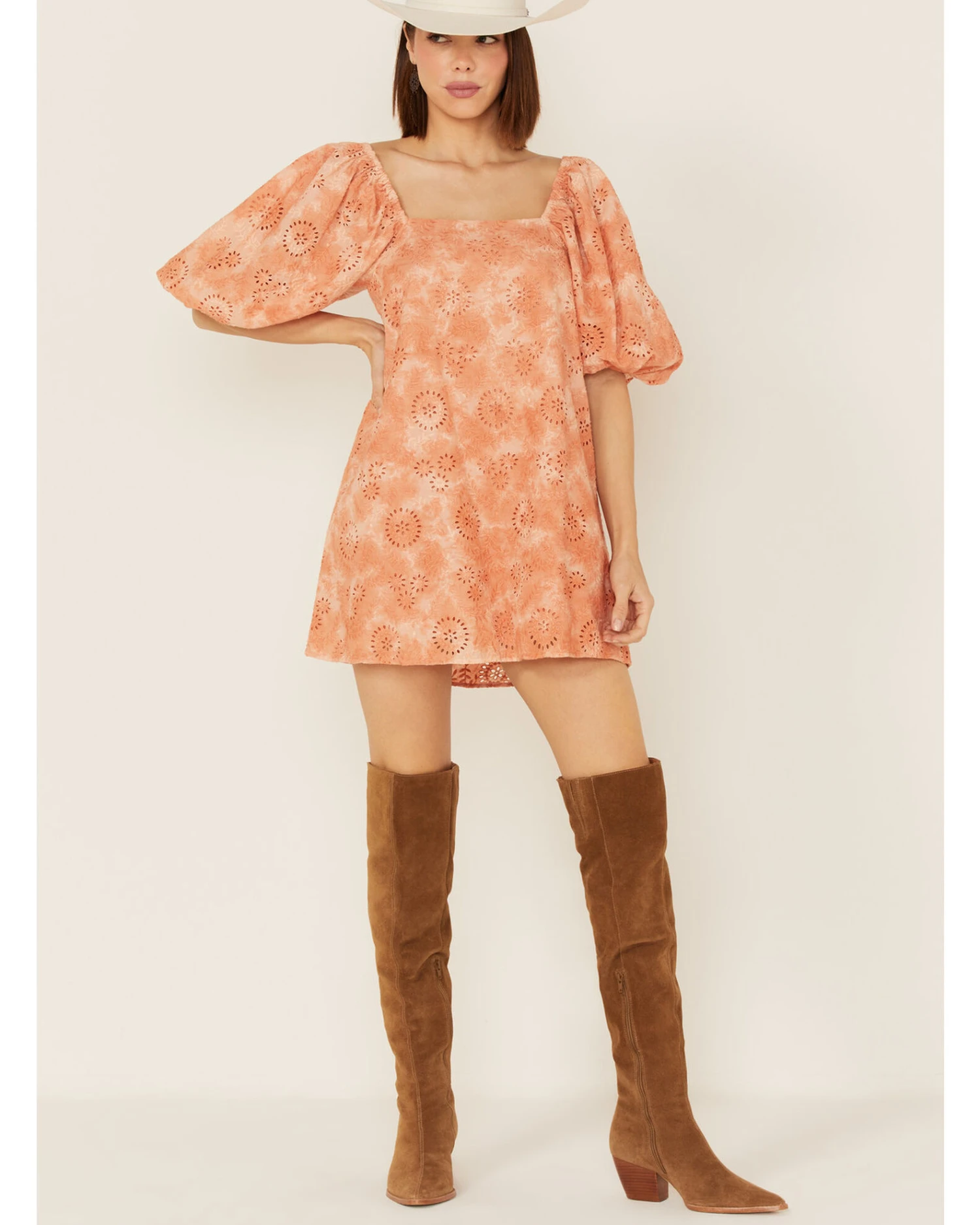 - Eyelet lace overlay