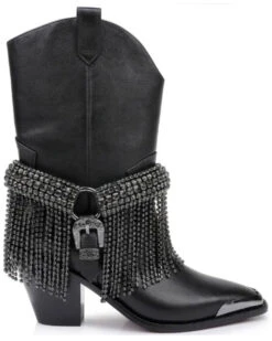 Caborca Silver By Liberty Black Women’s Leopard Print Studded Short Western Boots – Pointed Toe